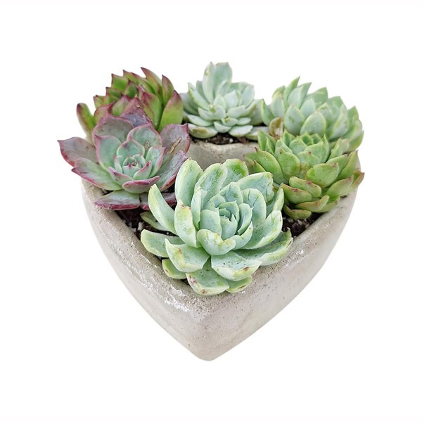 Live Succulent Plants in a Concrete Heart-Shaped Planter