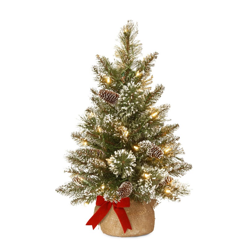 This Glittery Bristle Pine Artificial Green Christmas Tree is 2 feet tall with a 16 inch base diameter. Featuring hundreds of individually crafted branch tips to create full bodied branches, this mini tree is designed to look and feel lifelike.