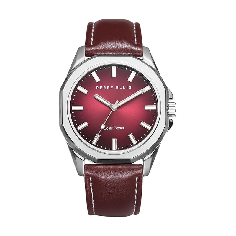 Eco-friendly and versatile, the Perry Ellis Solar Watch offers 4-month power reserve, water resistance, and classic style, making it perfect for any occasion.The Perry Ellis Solar Watch is a sustainable and stylish timepiece, powered by any light source and eliminating the need for battery changes. With just one charge, it holds a power reserve lasting up to 4 months, making it ideal for day-to-day wear.