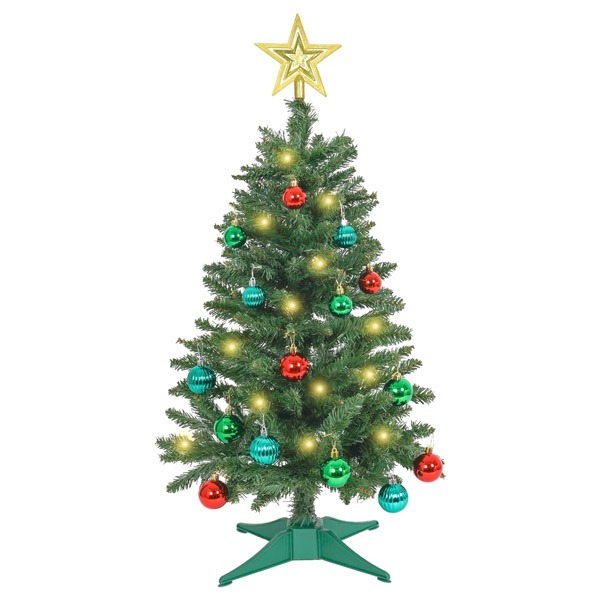 Compared to a real Christmas tree, this artificial tree can be reused for multiple holiday seasons, avoiding issues, such as needle drop. This 3 ft Christmas tree is perfect for adding a special touch to your Christmas decorations. Complete with Christmas balls and stars, this Christmas tree will make your Christmas stand out.